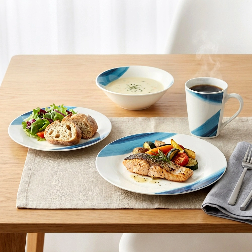 Porculan s glatkom glazurom lako se čisti, pogodan je za perilicu posuđa i mikrovalnu pećnicu, a uz pravilnu upotrebu trajat će godinama. Set je sjajan za svakodnevne obiteljske obroke i druženja s gostima – od doručka, preko ručka, do večernjeg čaja.
