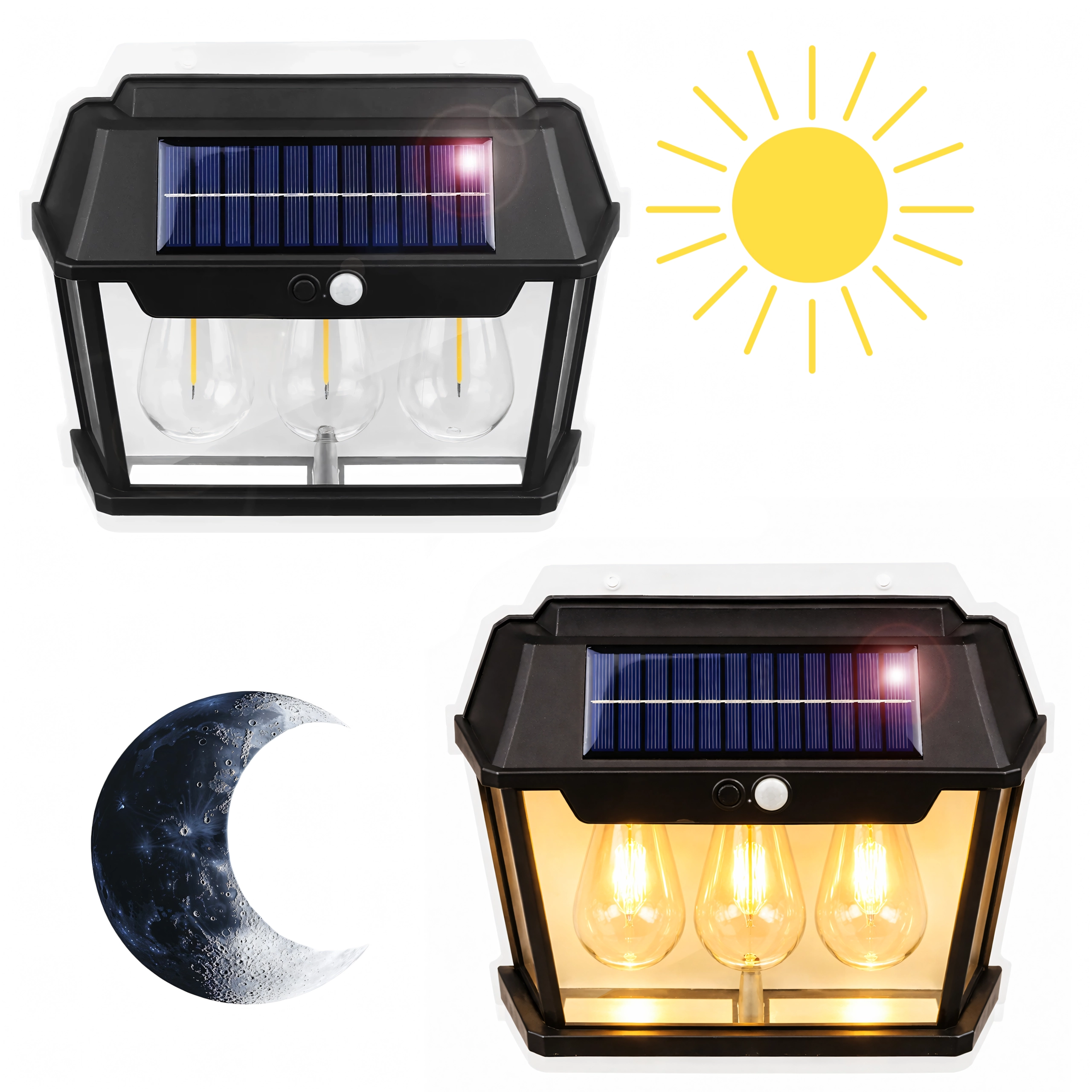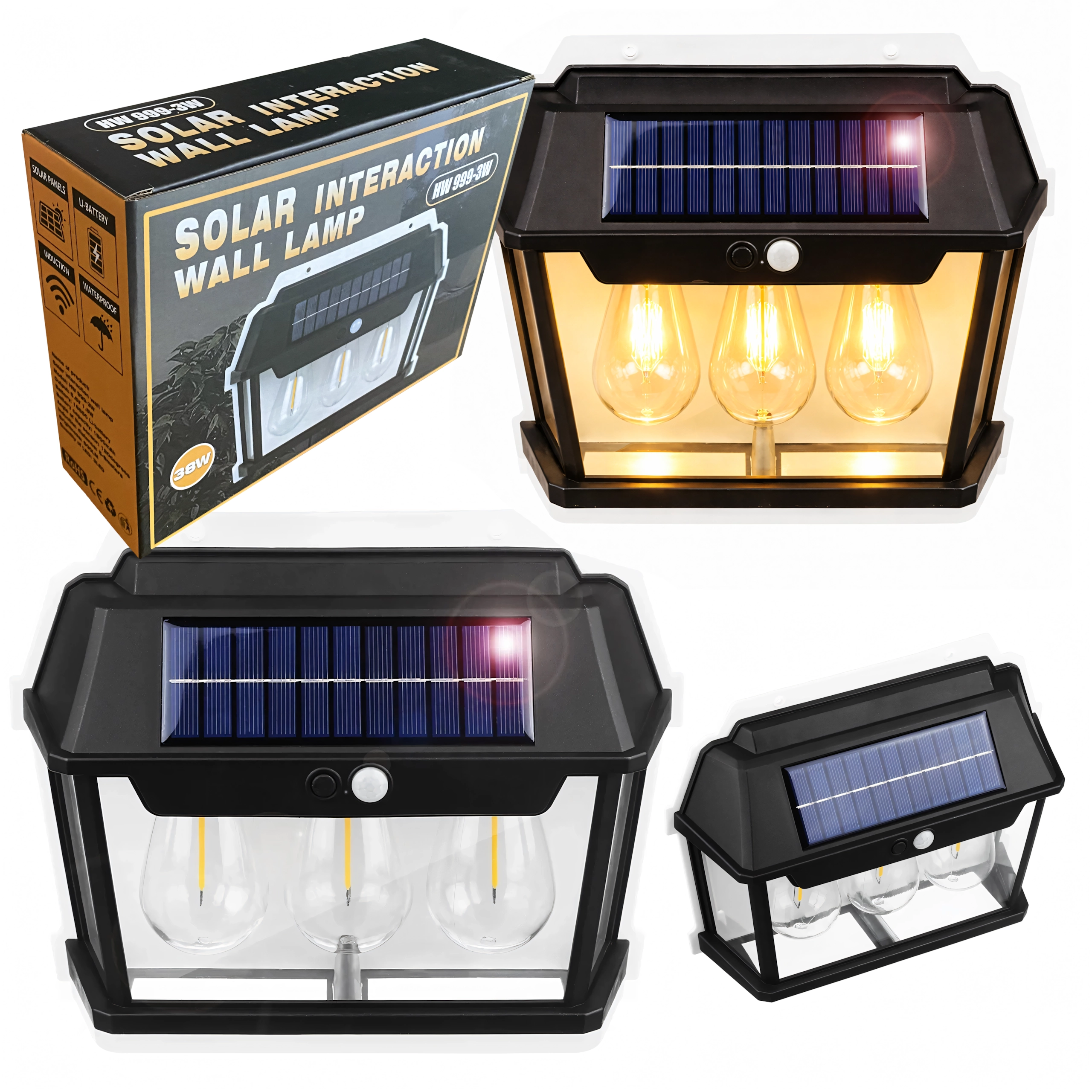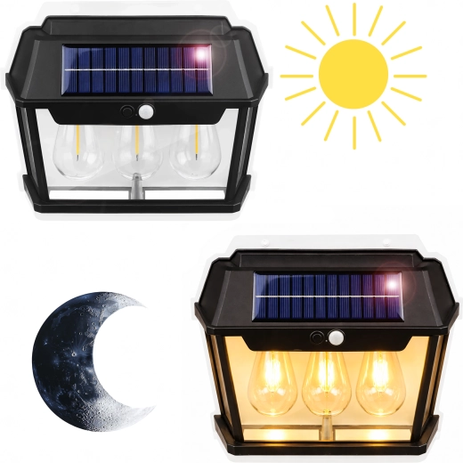 Solarna vanjska zidna svjetiljka s senzorom pokreta – trostruka LED lanterna