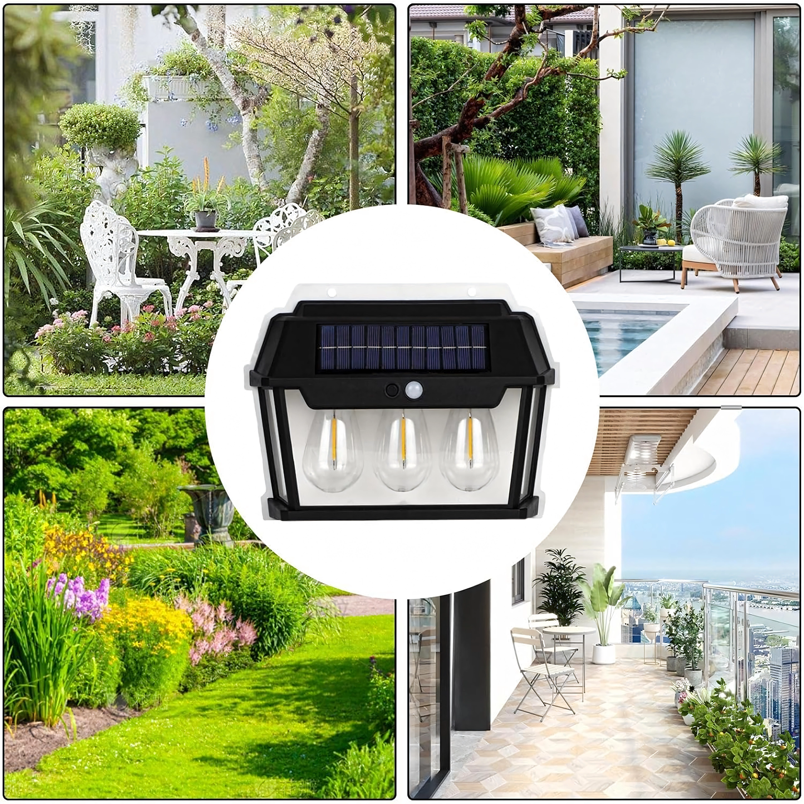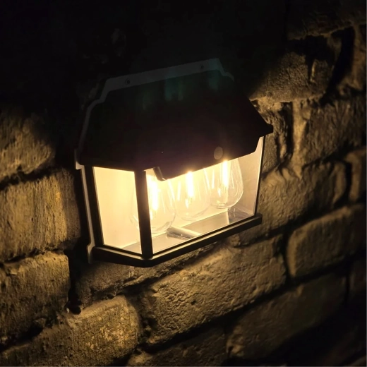 Solarni panel na gornjoj strani danju se puni sunčevom energijom, a navečer se svjetiljka automatski uključuje. Prozirni bočni paneli i čvrst okvir osiguravaju otpornost na vremenske uvjete te ujedno lijepo raspršuju toplo svjetlo za ugodnu atmosferu.