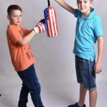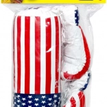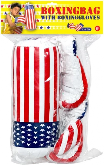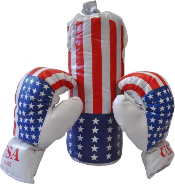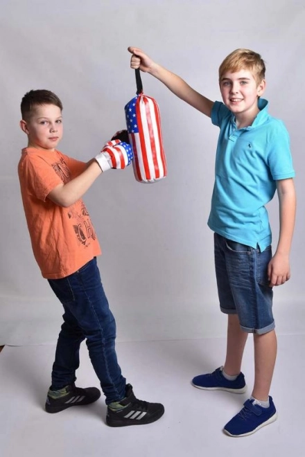 Rukavice su veličine koja savršeno pristaje malenim dječjim rukama. Vreća i rukavice s motivima američke zastave zabavit će svakog malog borca. Igračka je izrađena od mekog materijala, stoga se ne morate brinuti o mogućim ozljedama. Razvija dječju spretnost i maštu te potiče dijete na zdravu tjelesnu aktivnost.