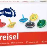 Drveni set zvrkova za vježbanje fine motorike i sate zabave. Sadrži šest šarenih zvrkova koji fasciniraju pokretom i kolorističkim uzorcima.