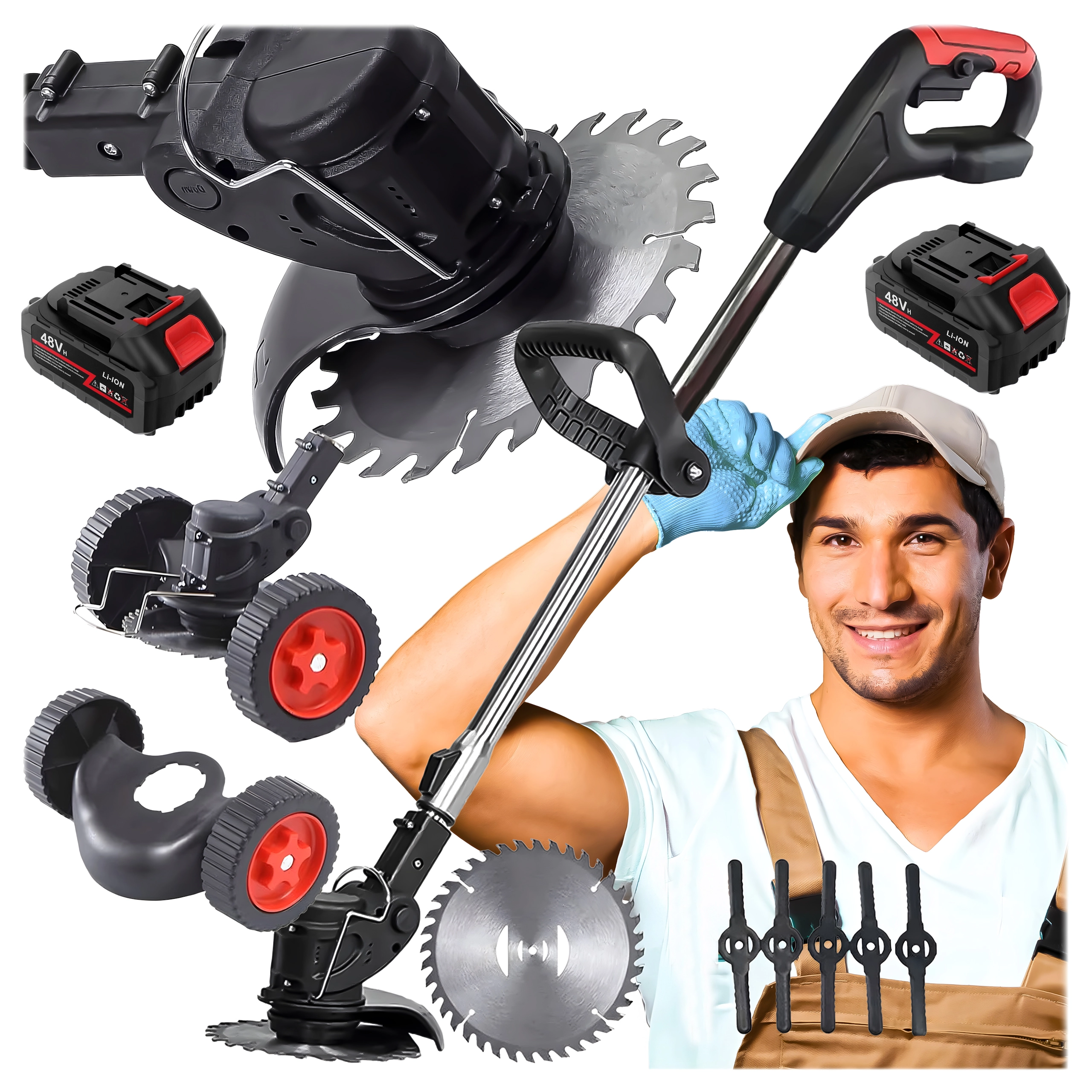 • Zamjenjive oštrice i noževi – za travu, korov i lagane izbojke.