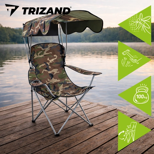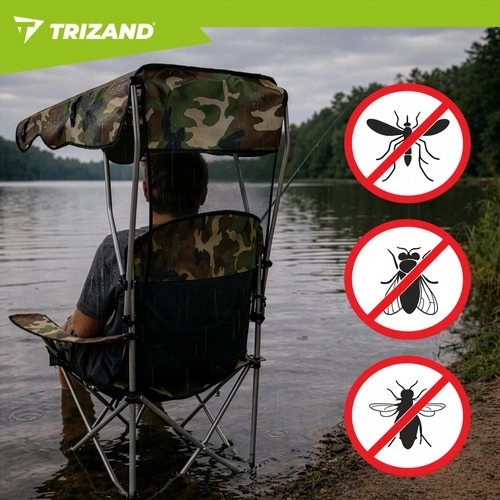 Uživajte u udobnosti kraj vode i u kampu sa sklopivom stolicom TRIZAND PANAMA. Nudi integriranu nadstrešnicu s mrežom protiv komaraca, stabilnu konstrukciju do 100 kg, široko sjedalo i visoki naslon za dugo sjedenje bez umora. Izdržljiva Oxford 600D tkanina, ravne nožice protiv propadanja i praktični nasloni za ruke jamče udobnost u prirodi. Jednostavno se sklapa i prenosi u futroli – idealno za ribolovce, kampiranje i vrt.