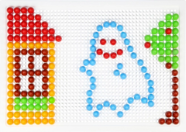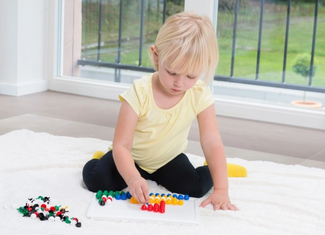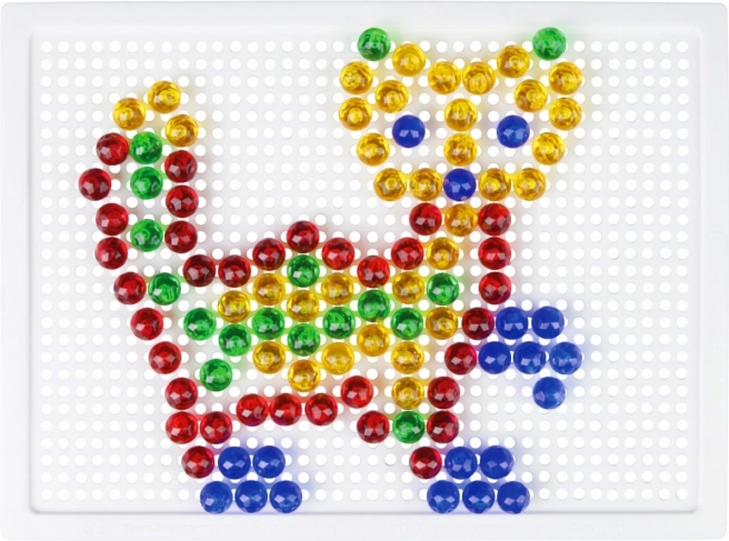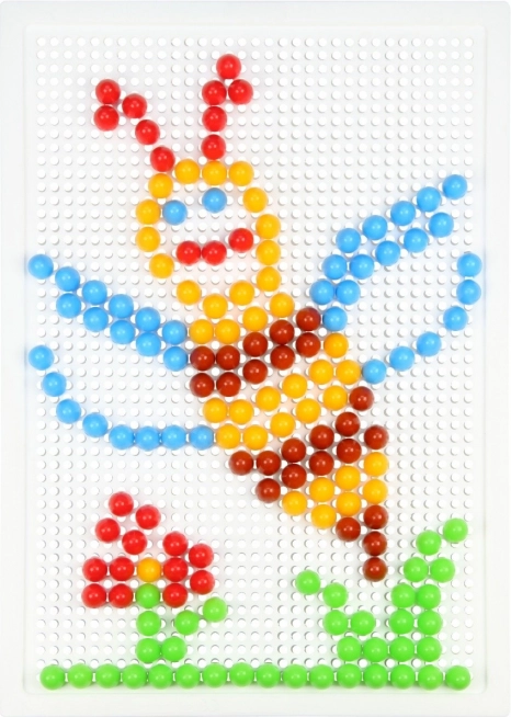 Čepići promjera 10 mm u živim bojama odlično prianjaju u čvrstu plastičnu podlogu 21 × 16 cm za ugodno stvaranje.