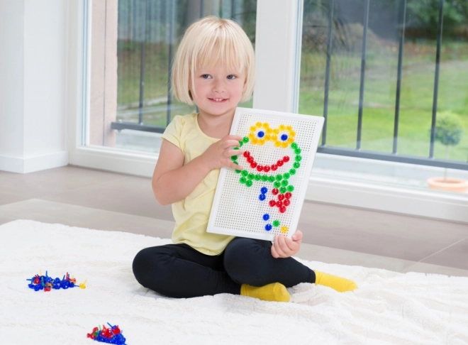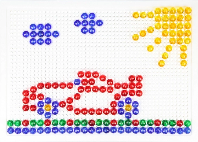 LENA mozaik sa 100 šarenih čepića idealan je izbor za kreativnu igru kod kuće i u vrtiću. Zahvaljujući jednostavnom sustavu umetanja čepića u perforiranu ploču, djeca vježbaju koordinacijske vještine i strpljenje dok stvaraju vlastite motive – životinje, vozila ili maštovite uzorke.