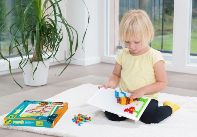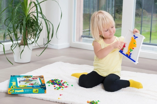Otkrijte kreativni svijet s LENA čepičastom mozaičnom igrom – zabavna i istodobno edukativna igračka koja razvija finu motoriku, maštu i kreativnost. Djeca umeću šarene čepiće u mrežastu podlogu i ponovno iznova stvaraju šarene slike.