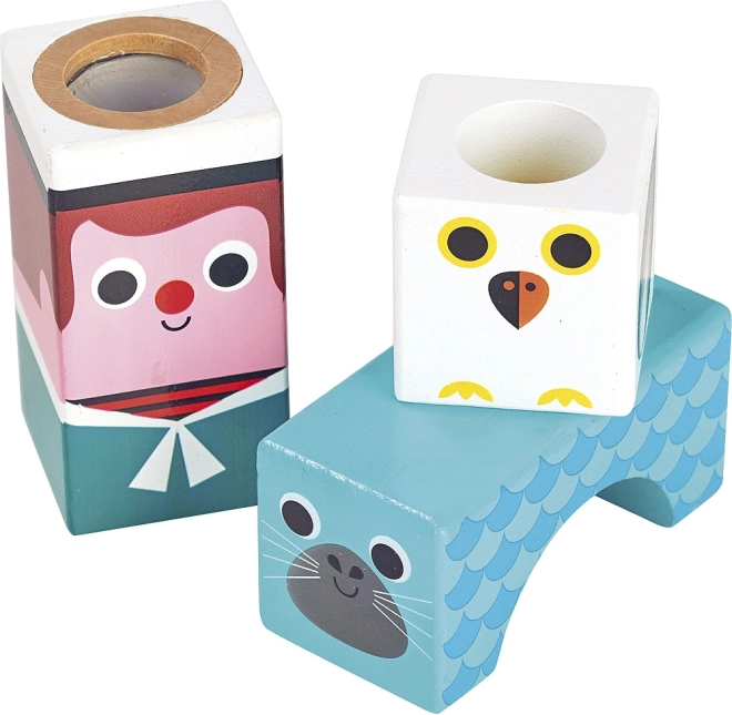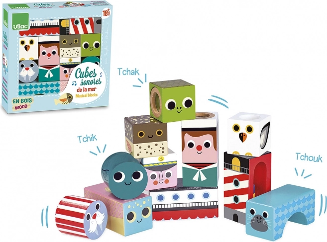 Senzorne drvene kocke s morskim motivima donose djeci radost otkrivanja oblika, boja i zvukova. Tijekom trešnje i slaganja djeca vježbaju hvat, koordinaciju i koncentraciju, dok različiti zvučni elementi potiču njihovo slušno opažanje. Ilustracije Ingele P. Arrhenius daju setu jedinstven retro štih i razigran karakter.
