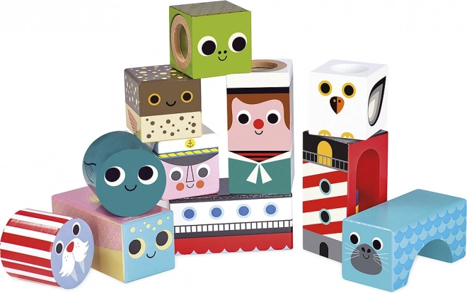 Paket sadrži 11 pomno izrađenih kocaka od izdržljivog drveta. Djeca mogu slagati kule, razvrstavati prema motivima ili bojama te stvarati vlastite morske priče – sve to prirodno razvija kreativnost i maštu. Kompaktno pakiranje prikladno je i za putovanja i za dječju sobu.