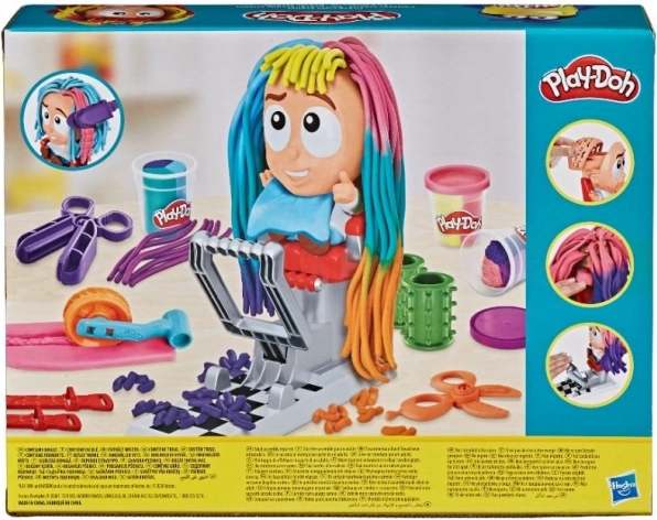 S ovim frizerskim setom Play-Doh lude frizure nastaju u tren. Posadite figuricu u stolac, pritisnite i iz glave će izrasti šarena griva koju možete dalje šišati, češljati i ukrašavati. Višebojna masa za modeliranje i zabavni dodaci pretvaraju svako šišanje u novu priču punu mašte.