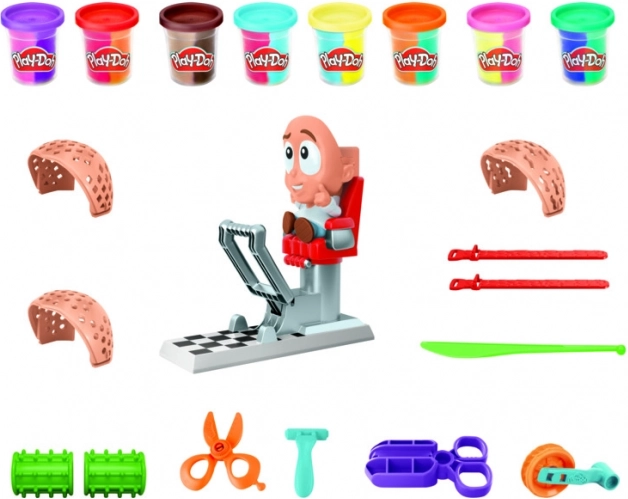- Figurica sa stolcem, baza za istiskivanje, škare, češalj, kalupi, čašice mase za modeliranje Play-Doh (više boja)