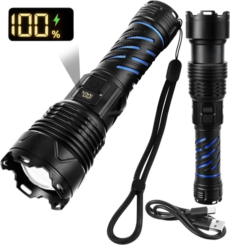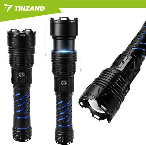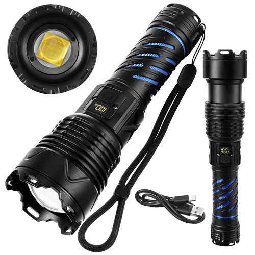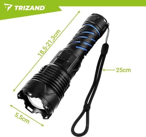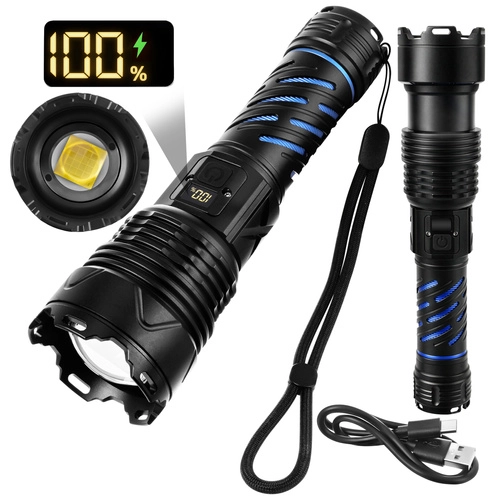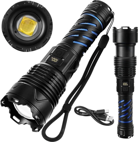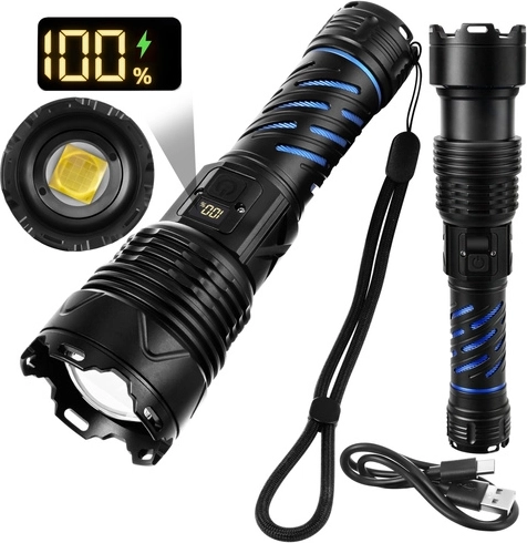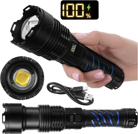 Ova robusna taktička LED svjetiljka pruža svjetlosni tok od 1500 lumena i domet do 500 m, tako da sigurno vidite cestu, dvorište i udaljene objekte. Zahvaljujući zumu lako prelazite između širokog snopa i uskog fokusiranog zraka. Napajanje osigurava akumulator 26650 5000 mAh s autonomijom do 8 sati (ovisno o načinu rada), koji se praktično puni putem USB‑C.