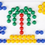 Set sadrži plastičnu mrežicu 21 × 16 cm i 80 čepića promjera 15 mm. Zahvaljujući kompaktnim dimenzijama, idealan je za dom i putovanja. Mozaik ne sadrži predloške – tako potiče slobodnu igru i maštu.