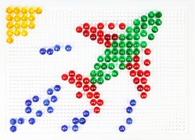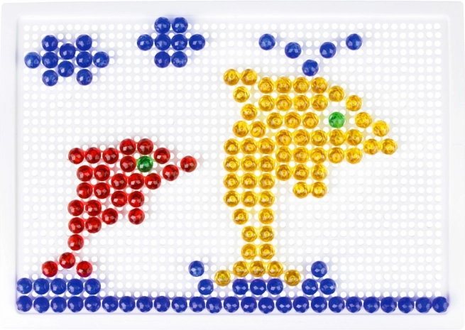 Kristalni mozaik s klobučicama LENA idealan je izbor za učenje kroz igru. Šareni, prozirni čepići lako se umeću u izdržljivu perforiranu ploču i omogućuju djeci slaganje motiva poput ribica, aviona ili cvijeća. Igra prirodno potiče koncentraciju, koordinaciju oko–ruka i prepoznavanje boja.