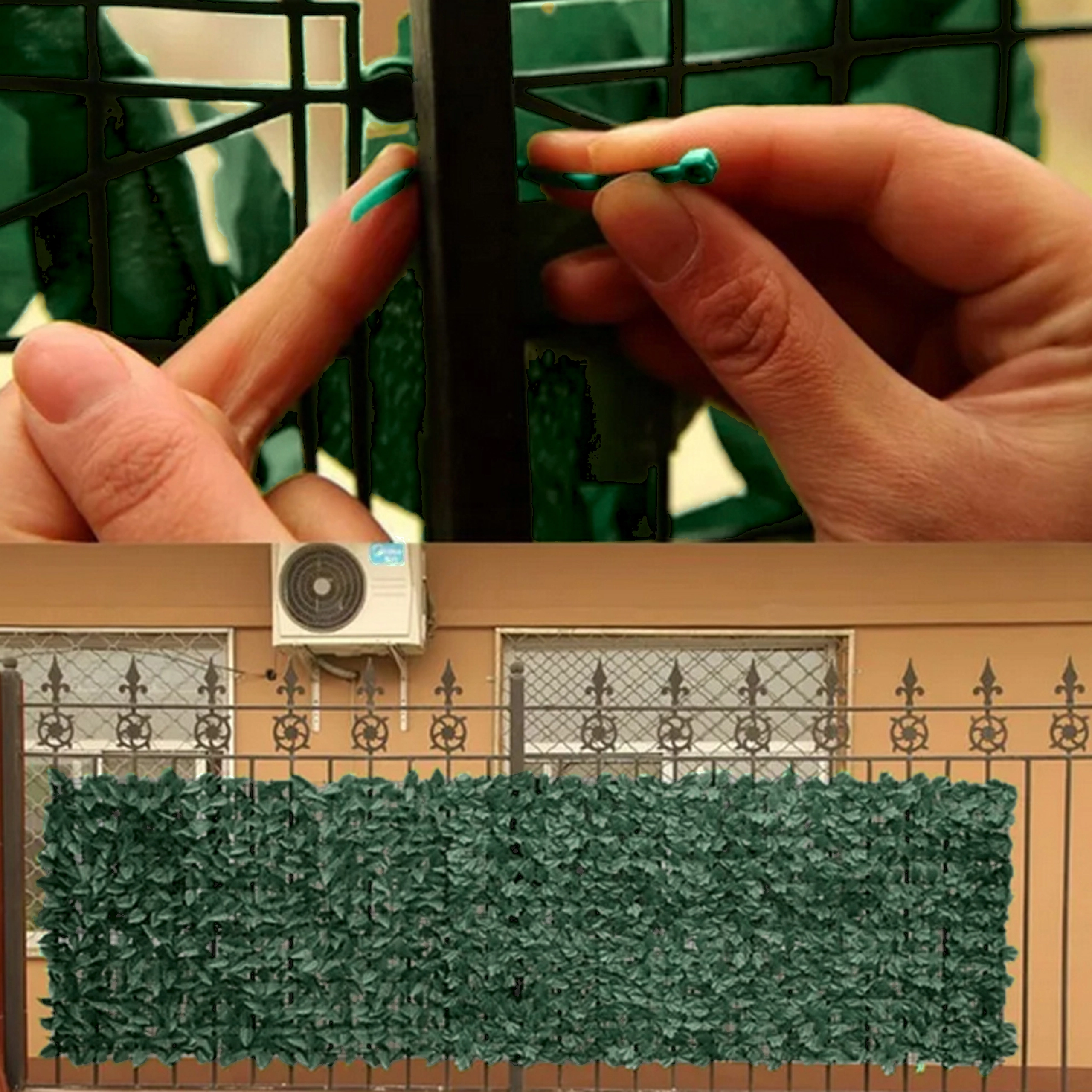 Umjetna živa ograda s realističnim listovima bršljana pretvara ogradu, balkon i terasu u svježi zeleni zid bez zalijevanja i šišanja. Rola 0,5 × 5 m lako se prilagođava različitim površinama – drvu, metalu i zidu – te trenutačno povećava privatnost i estetiku vašeg vrta.