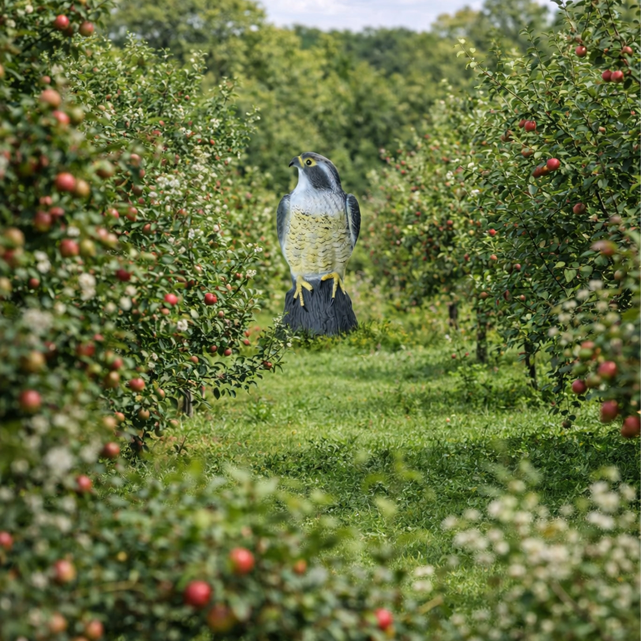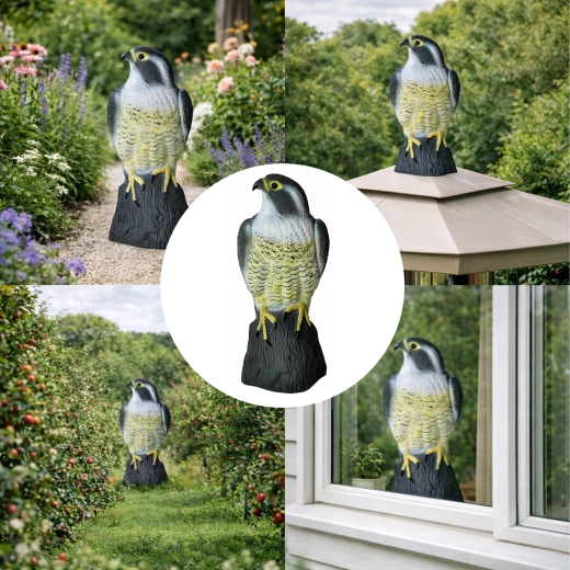 Realistična maketa sokola učinkovito odvraća golubove, čvorke i sitne ptice s balkona, vrtova, voćnjaka i terasa. Zahvaljujući vjerodostojnim bojama i detaljnoj izradi djeluje prijeteće i prirodno, pa ptice odvraća od slijetanja i oštećivanja uroda. Izrađena je od izdržljive plastike otporne na vremenske uvjete, ima stabilnu bazu i lako se postavlja bez alata. Idealna kao ekološka i tiha zaštita bez kemije.