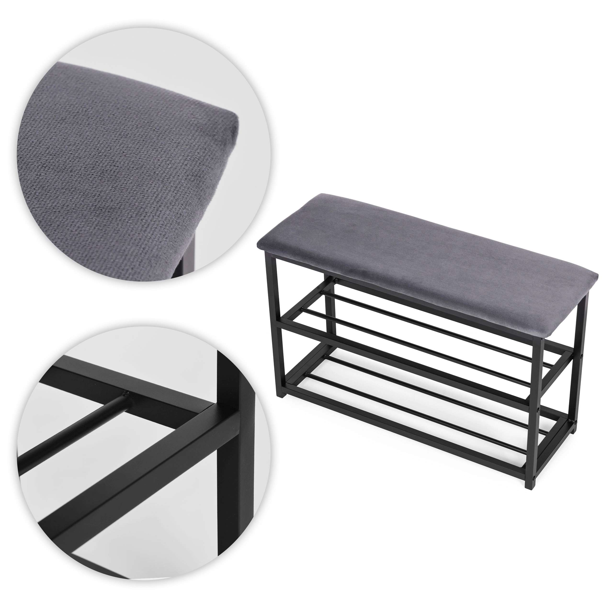 Mekano sjedalo s pjenastim punjenjem (cca 3 cm) pruža udobnost pri obuvanju i daje klupi elegantan izgled u sivoj nijansi.