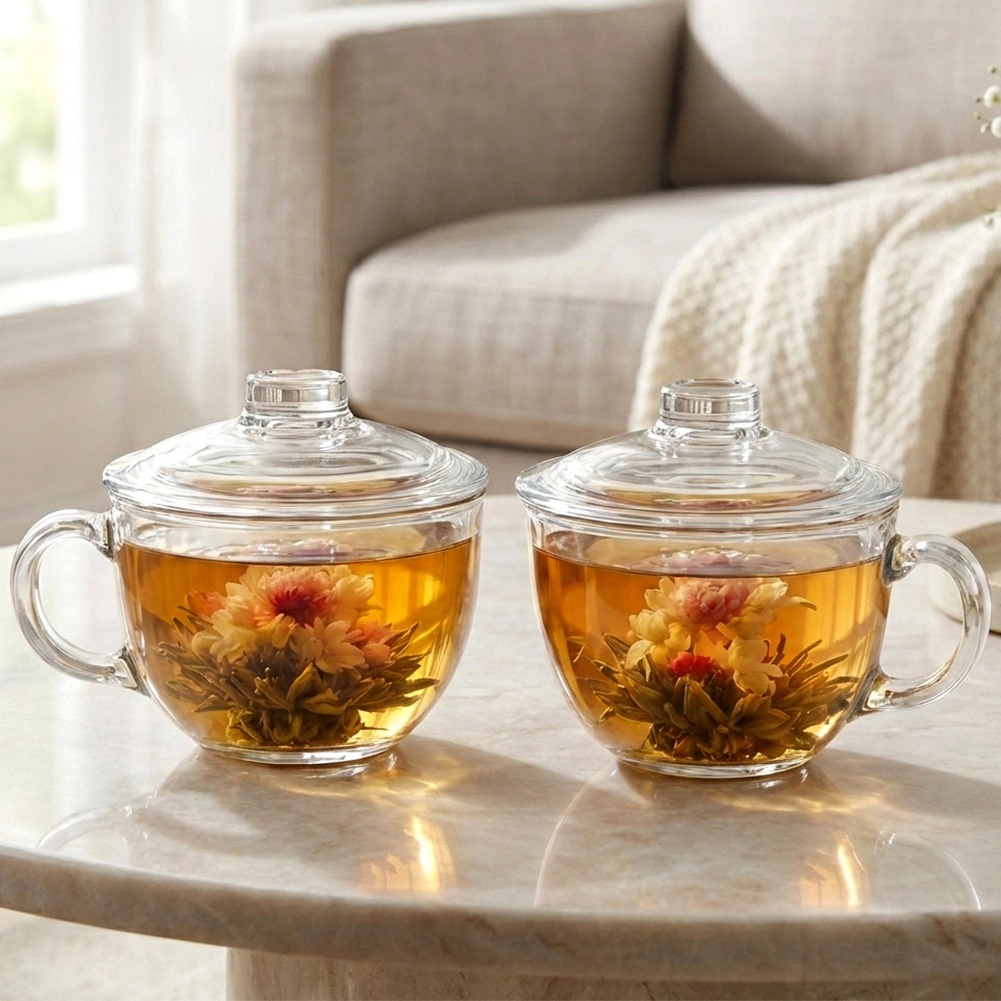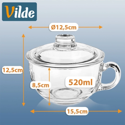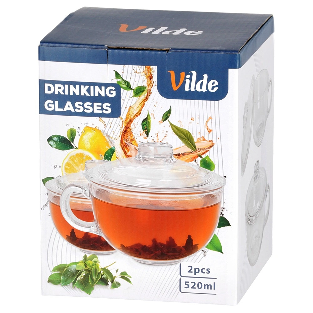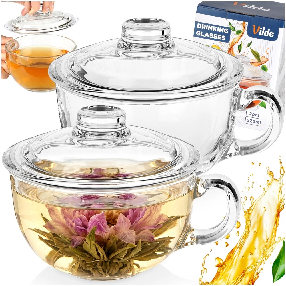 Elegantne staklene šalice s poklopcem zapremine 520 ml idealne su za posluživanje čaja, biljnih napitaka, kave i hladnih pića. Otporne na toplinu, s praktičnim poklopcem za zadržavanje temperature i udobnom ručkom za sigurno držanje. Pogodno za perilicu posuđa.