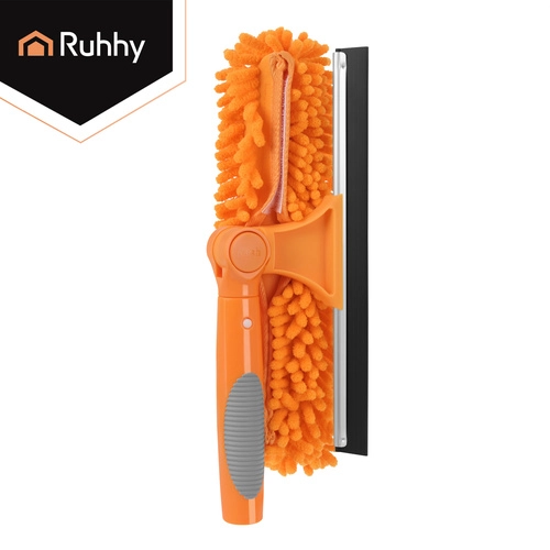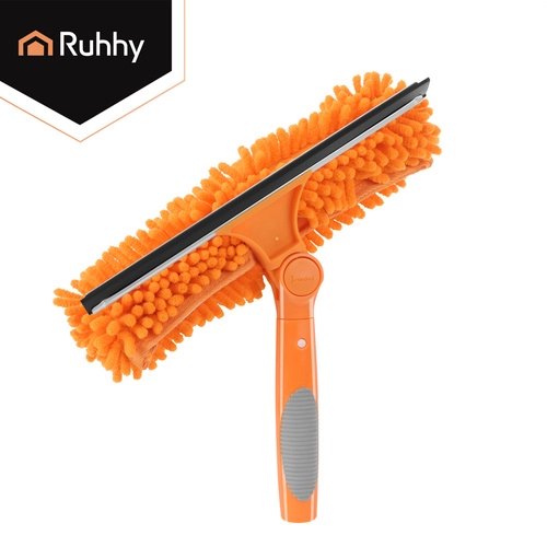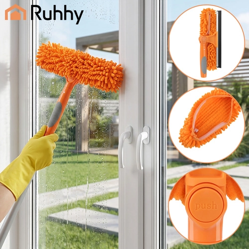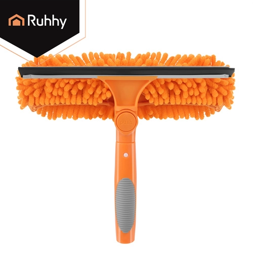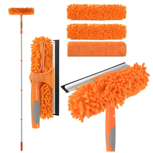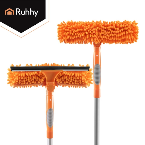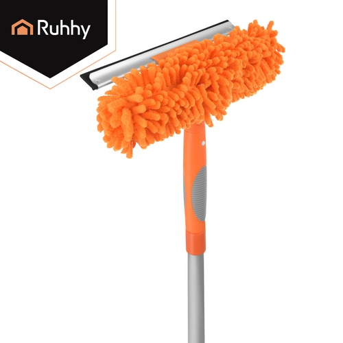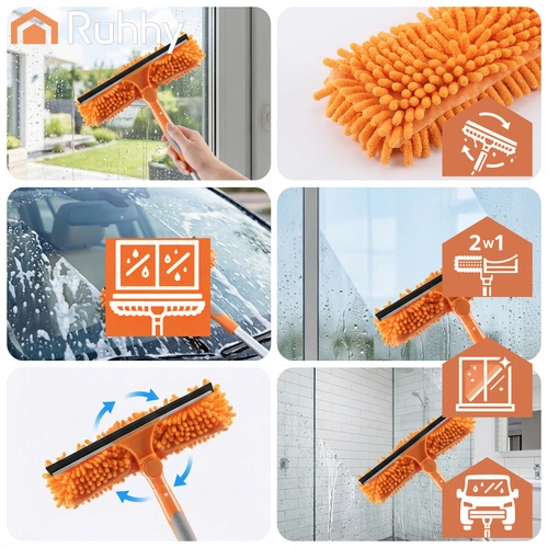 Obostrana glava spaja upijajuću mikrofibru za pranje i gumeni brisač za brzo uklanjanje vode bez tragova. Tri zamjenjive navlake (2× chenille, 1× glatki coral velvet) poboljšavaju učinkovitost čišćenja prema vrsti nečistoće i perive su i za višekratnu upotrebu.
