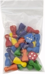Dio pakiranja su i dvije standardne igraće kocke, tako da imate sve potrebno za trenutačnu igru. Kompaktna zip vrećica dimenzija 7×13 cm drži figurice i kocke na okupu te je praktična za putovanja.