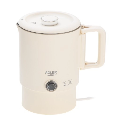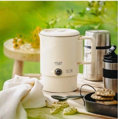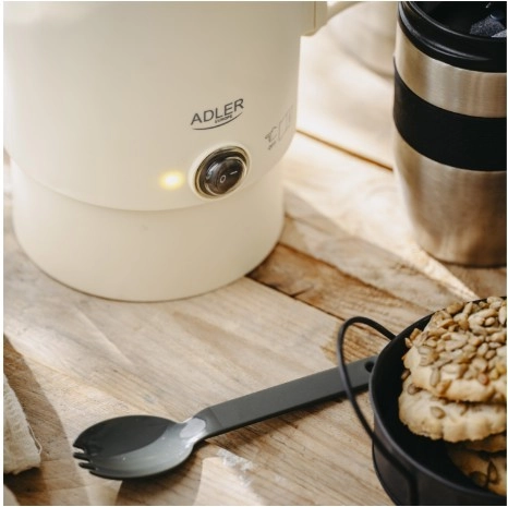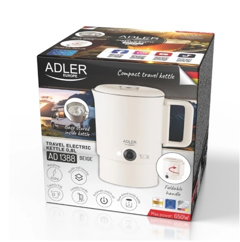 Kompaktno putno kuhalo ADLER AD 1388 zapremine 0,8 l idealno je za odmor, poslovna putovanja i kampiranje. Zahvaljujući sklopivoj ručki i mogućnosti spremanja baze unutar kuhala zauzima minimalno mjesta, a pritom nudi brzo zagrijavanje vode, sigurne dvostruke stijenke i automatsko isključivanje.