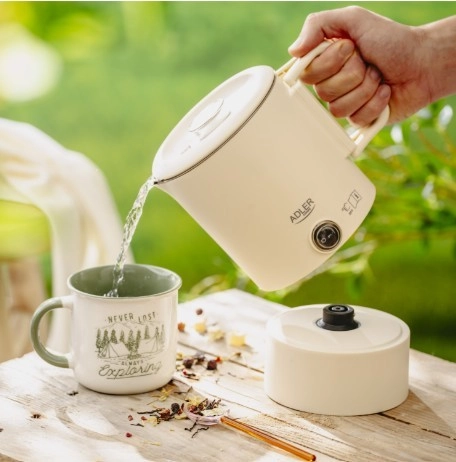 Uživajte u toplom napitku bilo kada i bilo gdje. Putno kuhalo ADLER AD 1388 kombinira laganu i izdržljivu konstrukciju s praktičnim detaljima za ugodnu upotrebu na putu. Unutarnja posuda od nehrđajućeg čelika SUS-304 higijenska je i jednostavna za čišćenje, a vanjska oplata od izdržljivog polipropilena štiti od opeklina.