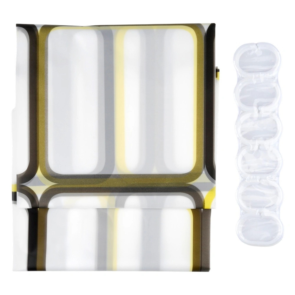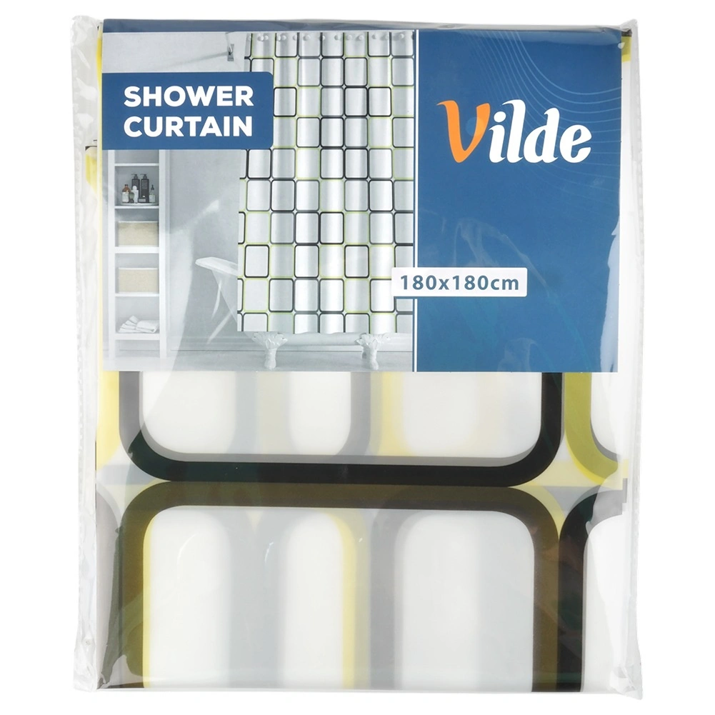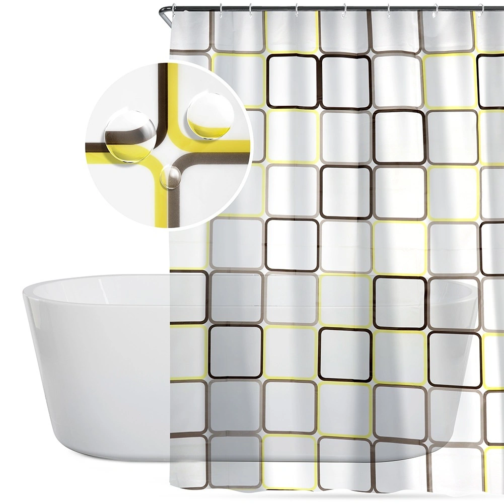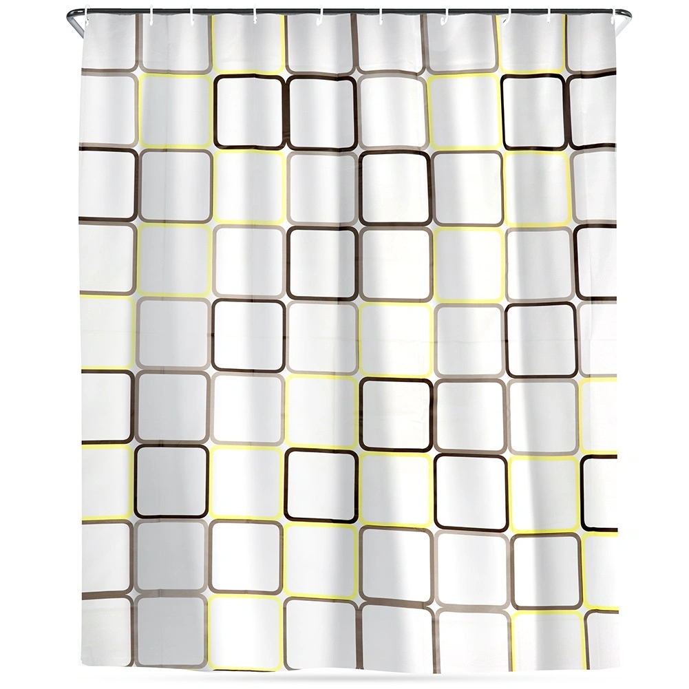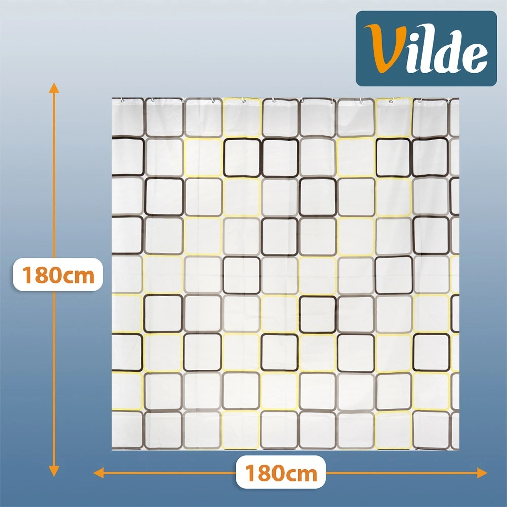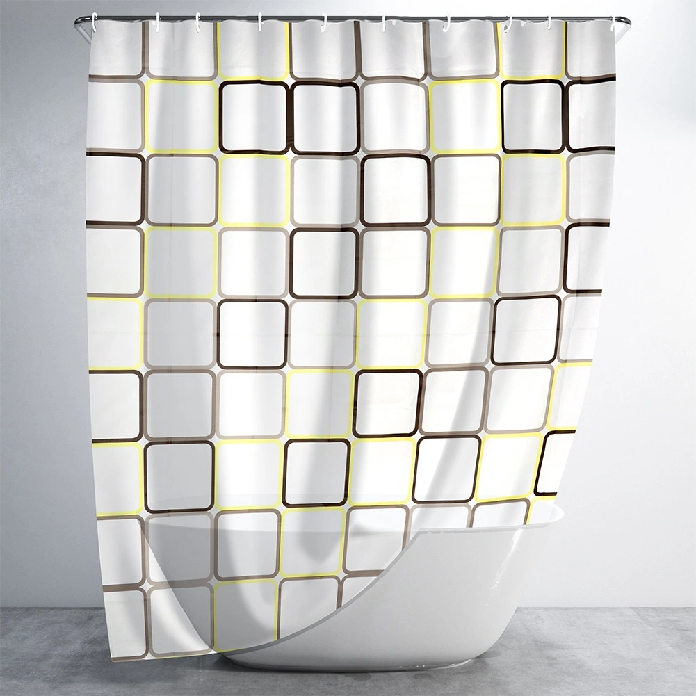 Otkrijte praktično rješenje za svakodnevnu kupaonicu: zavjesu za tuš od materijala PEVA, koji je lagan, izdržljiv i ekološki prihvatljiv. Polutransparentna bijela podloga s geometrijskim kvadratima u žutim i smeđim tonovima daje interijeru svjež, moderan izgled i pritom zadržava potrebnu privatnost.