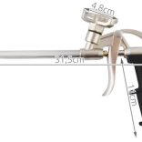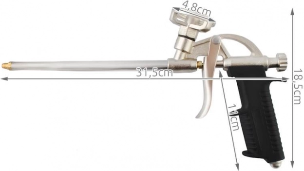 Ergonomska, profilirana ručka osigurava čvrst i udoban hvat i na teže dostupnim mjestima. Precizna mlaznica omogućuje ciljanu aplikaciju bez nepotrebnog rasipanja, dok regulacijski gumb nakon potpunog zatezanja prekida pristup zraka mlaznici i sprječava stvrdnjavanje pjene unutar alata.