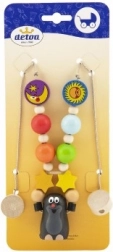 Viseća igračka od drvenih dijelova s omiljenim Krtekom zabavit će vaše dijete. Prikladna je za kolica, nosiljku ili ležaljku i lako se pričvršćuje. Izrađeno prema sigurnosnim standardima EU.