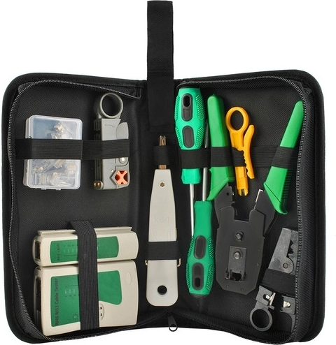 Ovaj kompletni set mrežnih alata idealan je za montažu, održavanje i dijagnostiku podatkovnih i telefonskih instalacija. Oslonite se na univerzalni tester za UTP/FTP/STP i RJ11/RJ12, izdržljiva krimp kliješta od kaljenog čelika i precizne alate za skidanje izolacije za čisto i brzo završavanje kabela.
