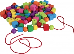 Šarene drvene maxi perle su idealna pomagala za djecu od 3 godine koji žele vježbati svoju spretnost i ujedno se zabaviti. Ovaj set sadrži 92 dijela različitih oblika i boja koje se mogu nizati na priloženu čvrstu špagu.