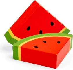 Žive boje i detalji lubenice motiviraju djecu na hvatanje i na uloge u kuhinjici ili trgovini.