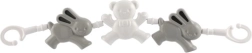 Ovaj plastični lančić za kolica s trima figuricama medvjedića i zeca pruža zabavu i vizualnu stimulaciju za vaše dijete tijekom vožnje.