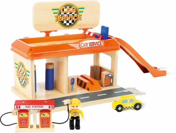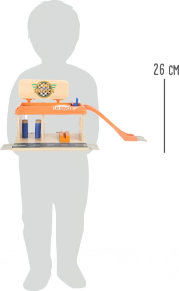 Ova drvena igračka idealna je za male ljubitelje automobila. Radionica i benzinska postaja donose zabavu na dvije etaže i nude još više prostora za istraživanje. Djeca će zavoljeti realistične dizajnerske elemente, uključujući rampu i parkiralište osigurano rampom-barijerom.