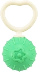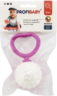 Zvečka je duga približno 18 cm, a kuglica ima promjer 5 cm – idealna veličina za udobno držanje. Dvobojna izvedba u miksu boja privlači pažnju i potiče opažanje kontrasta. Prikladno za djecu od rođenja.