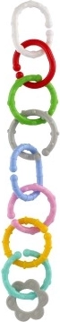 Ovaj set šarenih karika i oblika osmišljen je za najmlađe. Zahvaljujući različitim bojama, oblicima i teksturama djeca prirodno razvijaju osjetilnu percepciju i koordinaciju ruka–oko. Pojedini dijelovi lako se spajaju i čvrsto drže, pa djeca mogu stvarati vlastite lančiće ili pričvrstiti igračke na kolica ili autosjedalicu.
