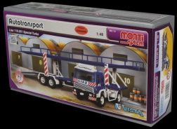 Konstruktor Monti System spada među najomiljenije češke modele automobila. S verzijom MS 19 Autotransporter sastavit ćete detaljan transporter automobila koji će oduševiti početnike i iskusne modelare. Nije potrebno nikakvo ljepilo niti boje – dijelovi precizno pristaju, a sastavljanje je brzo i čisto.