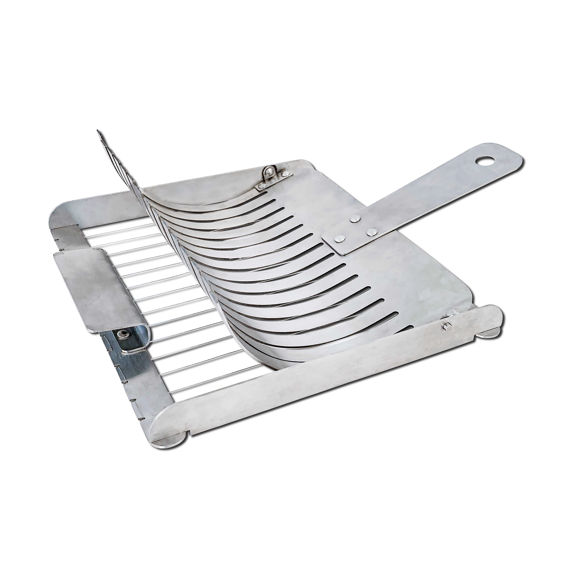 Praktičan i izdržljiv nerezni rezač knedla dimenzija 24 × 19 cm brenda KITCHISIMO osigurava brzo i ravnomjerno rezanje knedla od bijelog kruha i krumpira bez gnječenja. Zahvaljujući čvrstoj konstrukciji od nehrđajućeg čelika i oštrim žicama postižete precizne ploške u trenu.