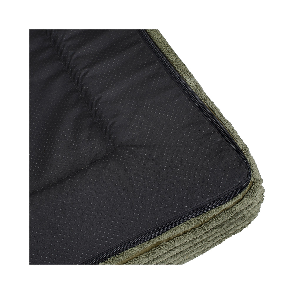 Navlaka od mekanog somota (100% poliester) s OEKO-TEX Standard 100 certifikatom izdržljiva je, brzo se suši i manje upija mirise. Zahvaljujući YKK patentnim zatvaračima lako se skida i pere u perilici na 30 °C. Vodootporni unutarnji sloj štiti jezgru od pjene od vlage i nečistoća, dok protuklizna donja strana drži krevet stabilnim i na glatkim podovima.