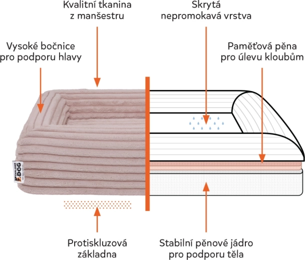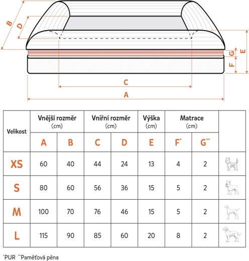 Kombinacija 4 cm PUR pjene (25D) i 2 cm memorijske pjene (40D) ublažava pritisak na zglobove, ravnomjerno raspoređuje težinu i podupire zdrav san malih pasa i štenaca.