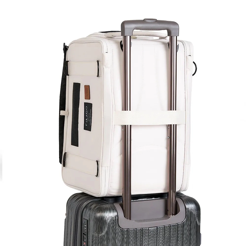 Za putovanja avionom i svakodnevne relacije: kompaktne dimenzije 43 × 27 × 28 cm odgovaraju zahtjevima većine aviokompanija za smještaj ispod sjedala. Odvojive naramenice omogućuju nošenje torbe udobno preko ramena ili kao ruksak i tako imati slobodne ruke. Unutra se nalazi sigurnosna kopča protiv neželjenog iskakanja te mekano podstavljeno dno za miran odmor.