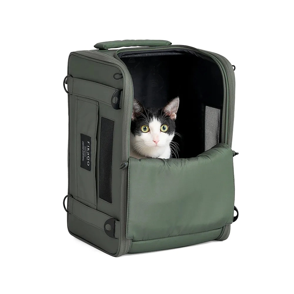 Stilski i izdržljiv prijenosni nosač za kućne ljubimce do 10 kg koji spaja udobnost, sigurnost i različite načine nošenja. Zahvaljujući kompaktnim dimenzijama stane ispod sjedala većine zrakoplovnih kompanija, ima prozračna mrežasta prozorčića, podstavljeno dno i sigurnosnu kopču unutra. Može se nositi i kao ruksak zahvaljujući odvojivim naramenicama.