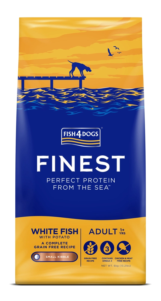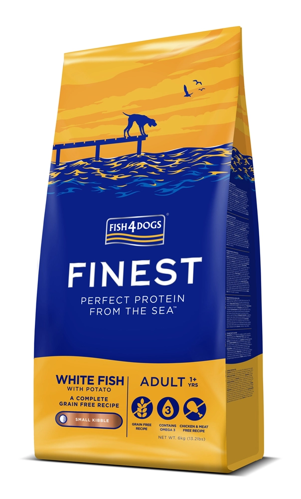 Tražite ukusnu i nježnu hranu za male odrasle pse? Fish4Dogs od bijele ribe s krumpirom je uravnotežena, bez žitarica i temeljena na kvalitetnim sastojcima od sezonskih bijelih riba iz sjevernog Atlantika. Kombinacija brašna od lososa i lososovog ulja osigurava prirodne omega-3 za vitalnost, kožu i dlaku, dok krumpir i graškov škrob pružaju laku probavljivost.