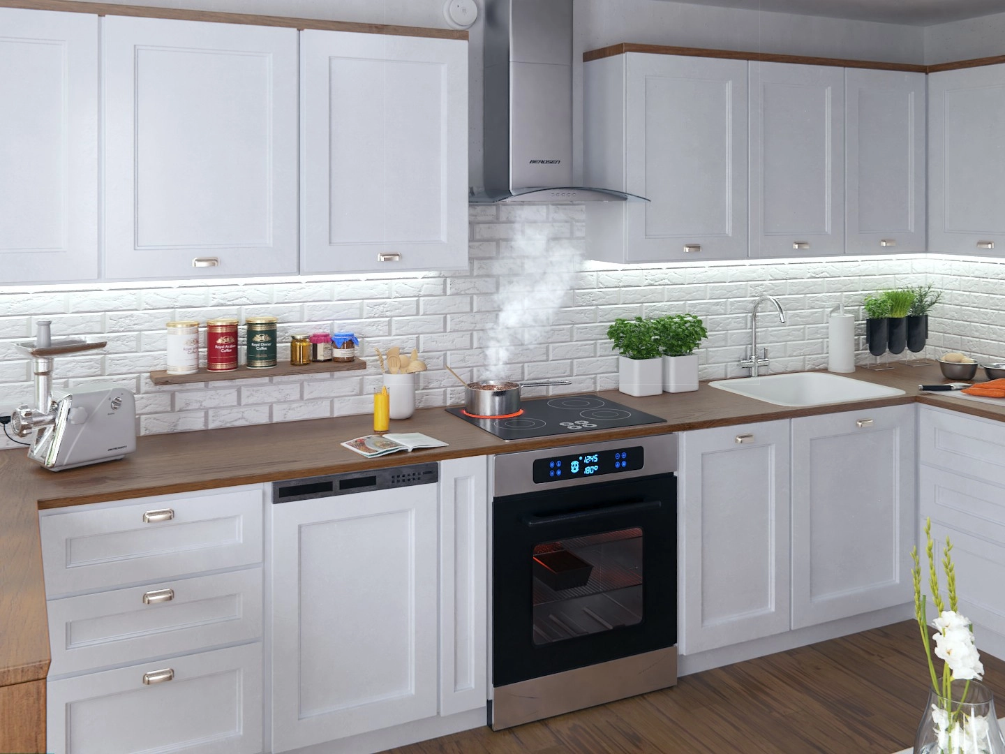 Napa BERDSEN BT-202 pouzdano je rješenje za čist zrak u kuhinji. Zahvaljujući kombinaciji INOX nehrđajućeg čelika i profiliranog kaljenog stakla (5 mm) savršeno se uklapa u moderne i klasične interijere. Tri brzine učinkovito hvataju paru i mirise, pri čemu je maksimalni kapacitet 350 m³/h idealan za tipična kućanstva. LED rasvjeta pruža prirodno svjetlo iznad ploče za kuhanje i štedi energiju.