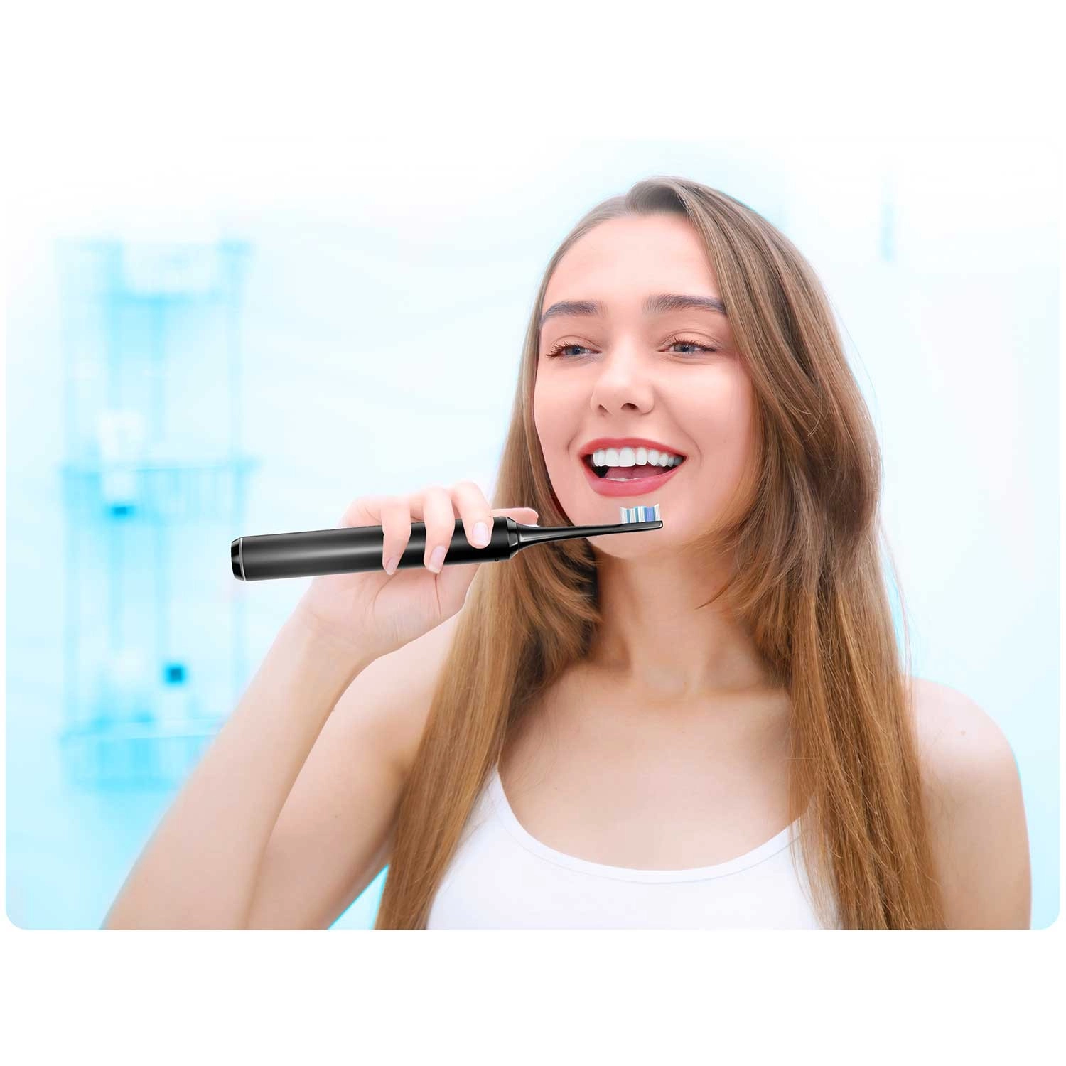 Profesionalna sonična četkica Berdsen Sonica B5 nudi do 40 000 pokreta u minuti, 5 načina čišćenja za različite potrebe, dveminitni timer s 30-sekundnim intervalima i dugo trajanje baterije. U pakiranju se nalaze 2 zamjenske glave i USB kabel za punjenje. Zahvaljujući tankom ergonomskom dizajnu, vodootpornom kućištu i jasnom indikatoru baterije postižete nježno, ali temeljito čišćenje i vidljivo bjelji osmijeh.