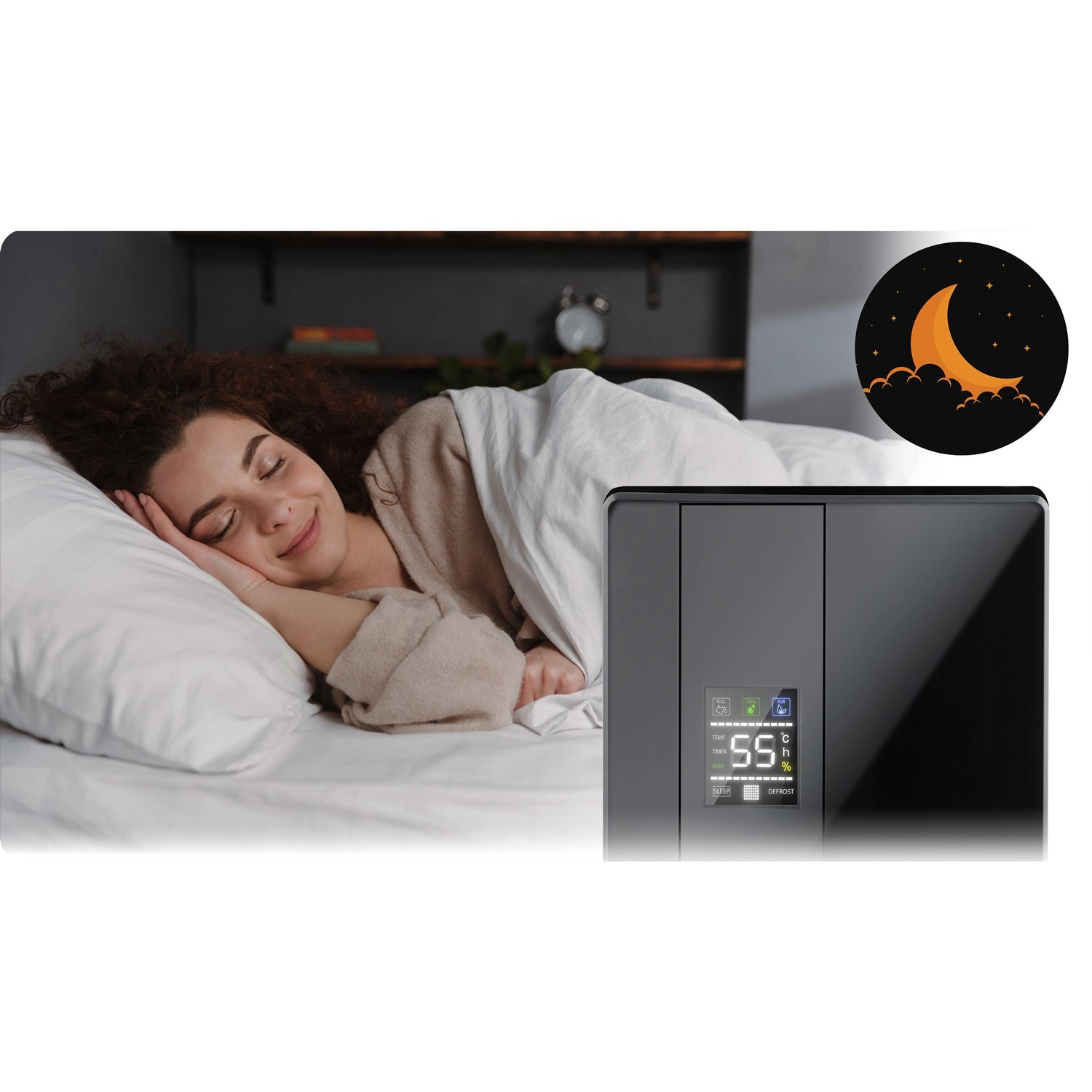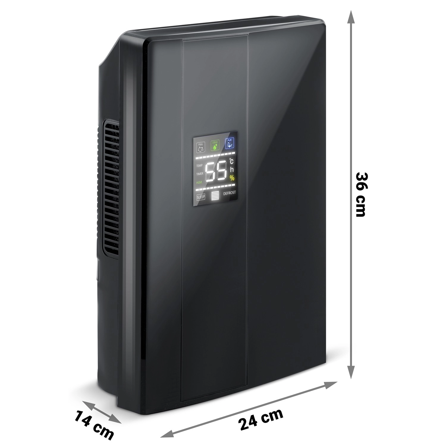 Pregledan LED zaslon, timer 1–24 h, daljinsko upravljanje i razina buke samo 38 dB. Postavite režim i pustite uređaj da radi bez ometanja.