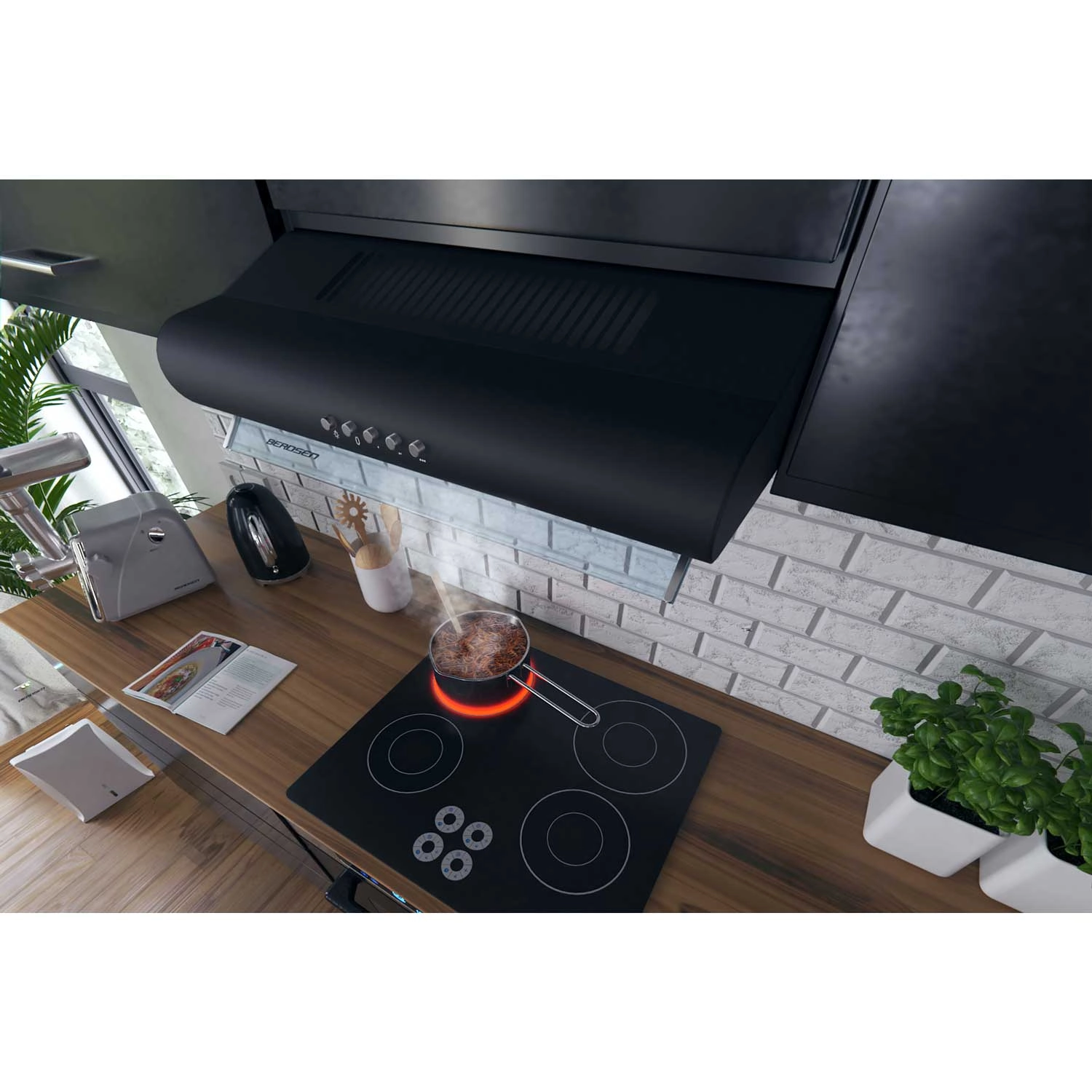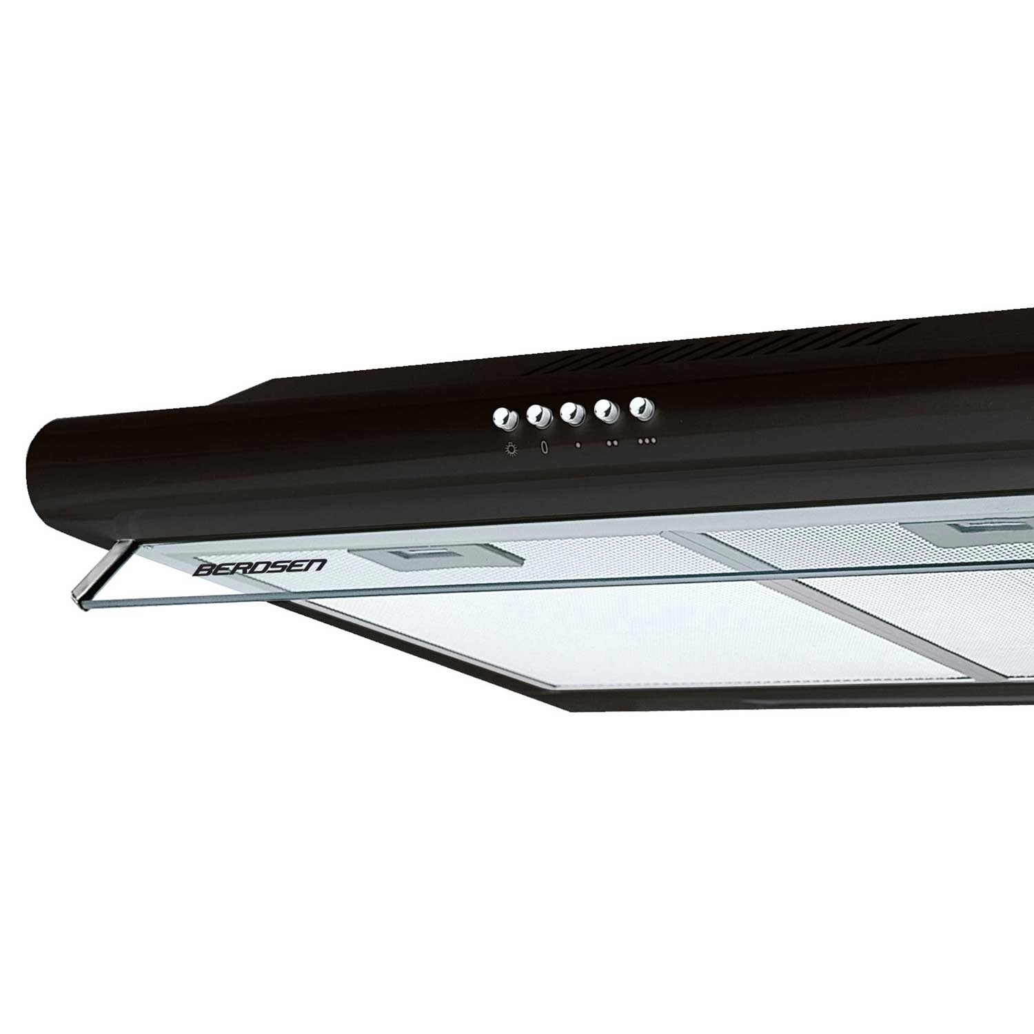 Model BERDSEN BE-10A je kompaktna i stilski oblikovana podormarićna napa koja se odlično uklapa u moderne i klasične kuhinje. Crnu izvedbu od nehrđajućeg čelika nadopunjuje stakleni panel koji naglašava elegantan izgled uređaja. Snažan motor s maksimalnim protokom 205 m³/h osigurava svjež zrak tijekom kuhanja, dok LED osvjetljenje (1×2 W) savršeno osvjetljava radnu plohu.