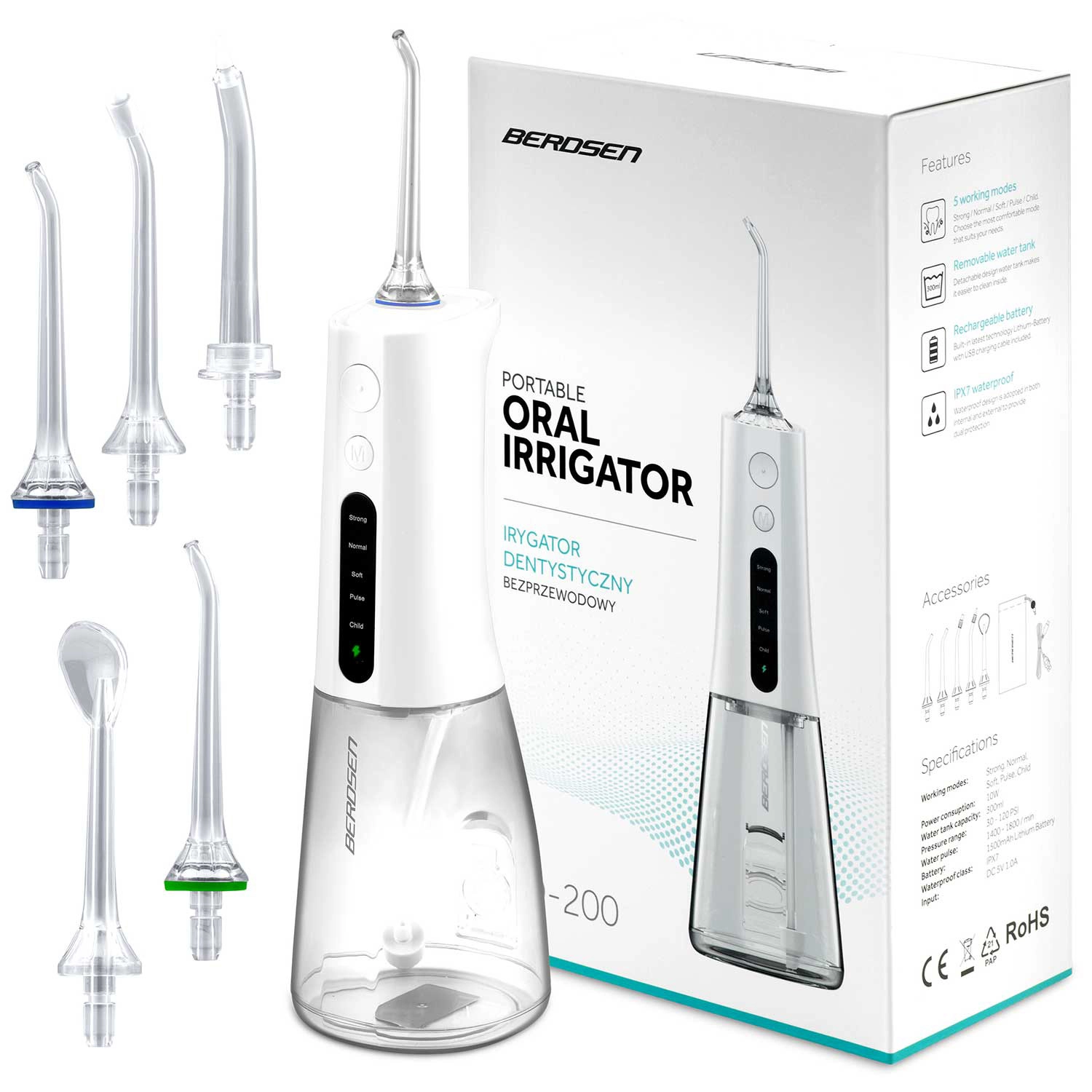 Bežični irigator BERDSEN učinkovito uklanja ostatke hrane, plak i bakterije s mjesta do kojih obična četkica ne dopire. Idealan je za međuzubne prostore, krunice, mostove, implantate i ortodontske aparatiće. Tanki mlaz vode s do 1800 pulzova/min osigurava preciznu higijenu i svjež osjećaj tijekom cijelog dana.
