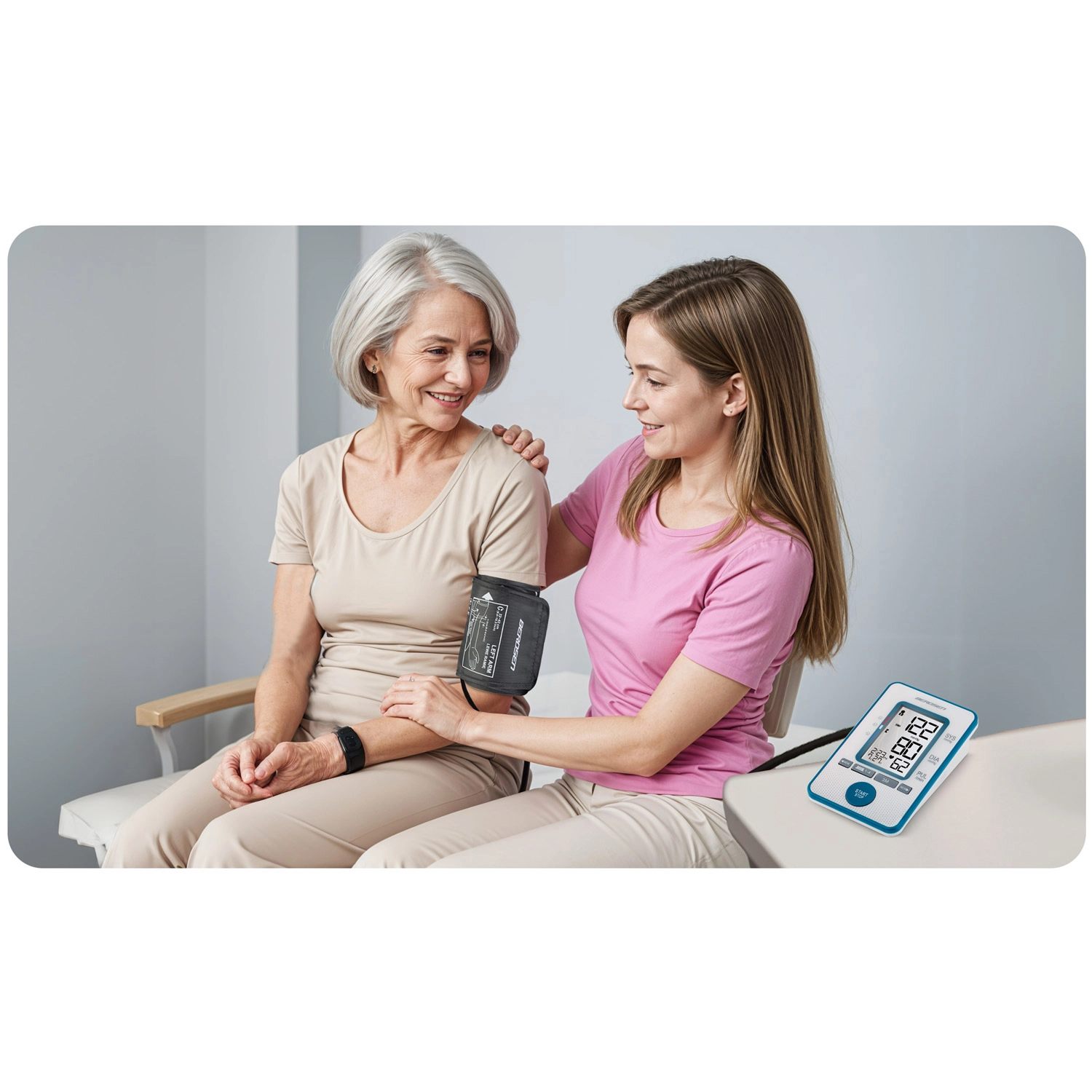 Intuitivna START/STOP kontrola i pregledan zaslon koji prikazuje sistolički i dijastolički tlak te puls. Idealno za brzo i pouzdano kućno mjerenje.
