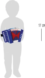 Akordeon je izrađen pretežito od izdržljive plastike s tekstilnim i papirnatim dijelovima kako bi bio siguran za djecu i vizualno privlačan. Odlično služi kod kuće, u vrtiću i u glazbenim radionicama kao motivacijsko pomagalo prije prave poduke sviranja instrumenta.