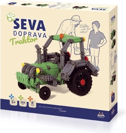 SEVA Transport - Traktor je jedinstveni građevni set koji omogućava djeci da razvijaju svoju kreativnost i manualne vještine već od malih nogu. Ovaj set sadrži ukupno 384 dijelova, koji se mogu kombinirati u različite traktorske modele.